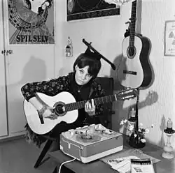She began playing classical guitar at eight; at 10 she debuted in a radio show.[1] Her first bout as a vispop singer was on an Erik Bye show when she was 13, and she released her first album in 1965.[1] With her second album in 1966[1] she was one of the pioneers ushering in the new vispop genre, a blend of traditional folk song and pop. This led to a series of engagements in Paris, and a period of commuting between these Paris performances and her secondary school in Lillestrøm, north of Oslo. At age 17 she conducted a major tour of Japan which included several TV shows and the release of four singles in Japanese.[1][3] She released her final solo album in 1973[1] and has released 13 singles for the Scandinavian and German markets.[1]