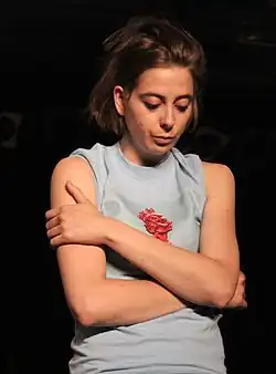 Ève Landry (born June 5, 1985, in Saint-Pascal, Quebec) is a Canadian actress from Quebec. After a time at the Ligue nationale d'improvisation, she began to appear on TV in the Ici Radio-Canada Télé show Unité 9 in the bad girl character of Jeanne Biron.[1][2]