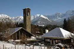 The church of Notre-Dame de Toute Grâce du Plateau d'Assy (Our Lady Full of Grace of the Plateau d'Assy) is a Roman Catholic church in France, constructed on the plateau d'Assy between 1937 and 1946. It faces Mont Blanc, and is within the territory of the commune of Passy, in the Haute-Savoie department. Constructed at the urging of canon Jean Devémy and designed by the Savoyard architect Maurice Novarina, the church is celebrated for its decoration, contributed by some of the best-known artists of the twentieth century. It is also viewed as an important landmark in the development of modern sacred art; its consecration in 1950 caused much consternation within the ranks of the clergy of France, who had hitherto been accustomed to more traditionally classical structures.