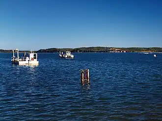 The Étang de Diane is not used much by the public, who usually only visit the coastal fringe.[10] The lagoon is privately owned by the Groupement Foncier Agricole de Diana (GFA), which leases it to companies who operate and manage it. Three shellfish and aquaculture companies harvest oysters and mussels, sea bass, sea bream and other species. Fishing is done with gillnets and fyke nets.[6] Five structures are spread over 80% of the lagoon.[10]