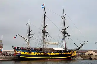 Étoile du Roy ('King's Star'), formerly Grand Turk, is a three-masted sixth-rate frigate, designed to represent a generic warship during the Age of Sail, with her design greatly inspired by HMS Blandford. The ship was built in Marmaris, Turkey, in 1996 to provide a replica of a frigate for the production of the ITV series adapted from the novels about Royal Navy officer Horatio Hornblower by C. S. Forester. The tall ship is used mainly in sailing events, for corporate or private charter, and for receptions in her spacious saloon or on her deck. In 2010, the French company Étoile Marine Croisières, based in Saint-Malo, purchased the ship and renamed her Étoile du Roy.[4]