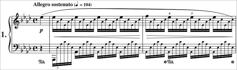 First measures of Chopin's Étude Op. 25, No. 1. (Urtext edition).