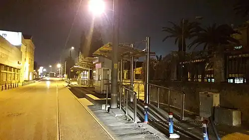 Üniversite is a light-rail station on the Konak Tram of the Tram İzmir system in İzmir, Turkey. Originally named Eğitim Sitesi, it is located along Şehitler Avenue and consists of a side platform and one track. Only Halkapınar-bound (Eastbound) trams stop at Üniversite, since westbound trams travel along Liman Avenue one block north.[1] The station gets its name from the Nevvar Salih İşgören High School, located next to the station.