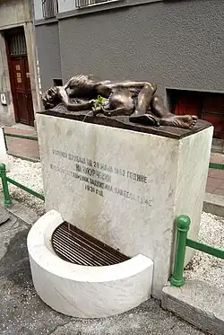 The monument and fountain is located in Dobračina Street in Belgrade, Serbia, at the site of the initial altercation. The fountain features a bronze sculpture of the apprentice boy that was killed, titled "The Boy With a Broken Pitcher". The memorial fountain was erected in 1931 from an endowment fund established by a tobacco merchant named Toma Vanđel in his will.[5] The design for the bronze sculpture on the marble pedestal was done by Simeon Roksandić, a sculptors of the Serbian Realist movement. A thirteen-year-old boy, Vlastimir Petković, was the model for the sculpture (it was a coincidence that he had the same last name as the victim of the conflict).