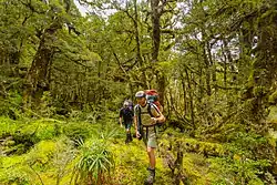 There were never any sawmills in the valley.[14] Forest covers the whole valley, with no grassy flats. Tall forest is replaced by stunted forest, merging to alpine scrub, at 800 m (2,600 ft) to 1,200 m (3,900 ft), depending on aspect, landform and cold air drainage. The valley has an average of over 2,540 mm (100 in) of rain, more than 200 wet days a year[13] and rainfall has been measured at over 5 cm (2.0 in) per hour.[15] In the 1970s red deer, goats and rats were scarce, possums in moderate numbers and stoats everywhere. The valley now has pest control as part of the Paparoa Range TB Management Area.[16]