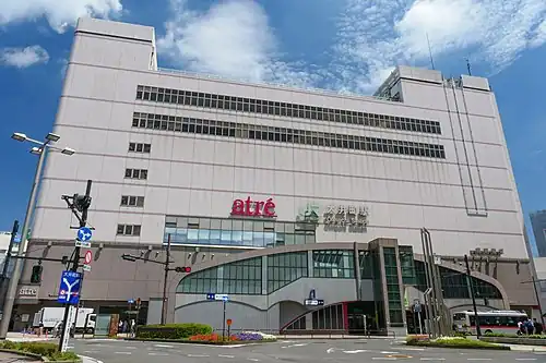 In fiscal 2013, the JR East station was used by an average of 100,403 passengers daily (boarding passengers only), making it the 38th-busiest station operated by JR East.[3] Over the same fiscal year, the TWR station was used by an average of 38,133 people daily (boarding passengers only).[4] In fiscal 2013, the Tokyu station was used by an average of 137,025 people daily (entering and exiting passengers), making it the busiest station on the Oimachi Line.[5] The average daily passenger figures for previous years are as shown below.
