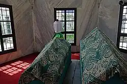 Mehmed died on 22 December just six and a half months later. According to a source the cause of Mehmed's death was distress caused by Mahmud's death.[22] Mehmed's son, Mahmud's half-brother Ahmed ascended the throne as Sultan Ahmed I. Mahmud who had been buried firstly obscurely, was honored with burial in a tomb built on the orders of his brother Ahmed,[15] in Şehzade Mosque, Istanbul. Ahmed also sent Safiye Sultan to the Eski (old) Palace on January 1604. He also replaced the chief black eunuch of the imperial harem, Abdürrezzak Agha, with a new one Cevher Agha, because of his role in Mahmud's execution.[3][23]