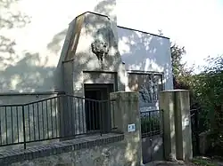 Ladislav Šaloun had the studio built when he won the commission for the gigantic Jan Hus Memorial as he needed a large space to create the asymmetrical memorial that now stands in Old Town Square in Prague.[1] The memorial that became a symbol of Czech self-government was dedicated to Jan Hus who was burned as a heretic in 1415 after refusing to recant his independent views.[2] Šaloun part designed the Art Nouveau villa and there he enjoyed visits from the Czech intelligentsia. Visitors included the painter Alphonse Mucha, the soprano Emmy Destinn, Karel and Josef Čapek, the violinist Jan Kubelík and his son Rafael Kubelík the conductor[3] and Otokar Březina the poet.[4]