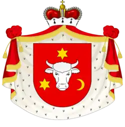The son of a boyar, Chancellor (mare logofăt) Toader Petriceicu (d. 1663), Ștefan was elected by the nobility – with the approval of the Ottoman Empire – to succeed George Ducas in 1672. The Ottomans forced Petriceicu to support their campaign against Poland at the Battle of Khotyn in 1673, but later ousted him for siding with the Poles[1] in November 1673. He returned to power briefly before Dimitrie Cantacuzino replaced him a second time in February the following year. Having retaken power once again from George Ducas in December 1683, the Ottomans eventually replaced Petriceicu permanently with Cantacuzino in March 1684.[2]