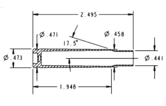 Colonel Whelen asserted the very small remaining portion of the .30-06's 17° 30 angled shoulder was likely to cause potentially dangerous headspace difficulties.[3] The headspace issue has been widely discussed. Frankford Arsenal machine shop foreman James Howe necked down cylindrical brass available in the arsenal manufacturing process to form cartridges with a .458-inch-diameter (11.6 mm) shoulder to fit the chamber of his rifles. Experimenters had less success forming cartridges by enlarging the necks of .30-06 cartridges with .441-inch-diameter (11.2 mm) (or smaller) shoulders,[4] but could form brass from .35 Whelen cases.[5]