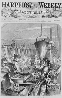 Making of .43 Spanish cartridges in Union Metallic Cartridge Co. factory at Bridgeport, Connecticut, 1877