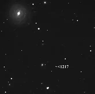![]() Maximiliana (marked "1217") near spiral galaxy NGC 521; imaged by K. and P. J. Heider. | |