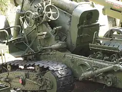 152 mm gun M1935 (Br-2) (Russian: 152-мм пушка обр. 1935 г. (Бр-2)) was a Soviet 152.4 mm heavy gun, produced in limited numbers by the Barrikady Plant in Stalingrad in the late 1930s. The most unusual feature of the gun was its tracked carriage, shared by a number of Soviet heavy artillery systems of the interwar period. Despite a number of drawbacks, most notably limited mobility and short service life of the barrel, the weapon was employed throughout the German-Soviet War; an upgraded variant with wheeled carriage, Br-2M, remained in service at least until the 1970s.