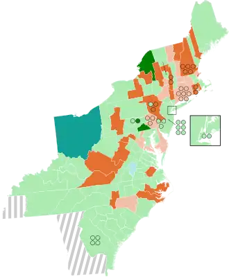 ![]() Results: Federalist hold Federalist gain Democratic-Republican hold Democratic-Republican gain Dissident Republican hold Dissident Republican Gain Undistricted | |||||||||||||||||||||||||