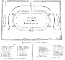 "In 1867 the Republican power in the Legislature was total in the Senate, 40 Republicans out of forty seats. In the House the numbers rose to 230 Republicans as against but 10 Democrats."[6]