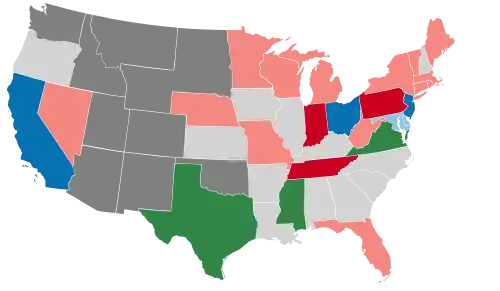 ![]() Results of the elections: Democratic gain Democratic hold Republican gain Republican hold Unreconstructed states | |||||||||||||||||||||||||||||||||||||