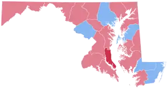 In this election, Maryland voted 12.49% more Democratic than the nation at-large.[2]