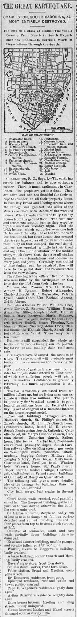 "THE GREAT EARTHQUAKE" The Times and Democrat, Orangeburg, S.C., September 16, 1886