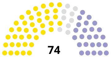 74 MPs were elected to the 11th session of the New Zealand Parliament.[3] The Māori electorates voted on 27 November and the European (now known as General) electorates on 5 December. There were 183,171 voters registered in the sixty-two European electorates, which returned a total of 70 members.[4] This figure includes 13,668 voters in the six electorates where there was an unopposed return. 136,337 valid votes were cast in European electorates, including additional votes cast in the four three-member electorates.