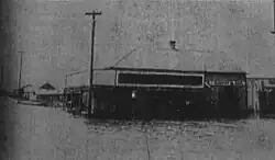 In New Orleans, the storm caused substantial damage, with many homes destroyed and ships wrecked.[17] Communication with the city was completely lost after most of the telegraph wires were downed. Around 3:00 pm on September 21, advisories from the New Orleans Weather Bureau ceased, leading to concerns over the state of the city. Prior to the communication loss, the Weather Bureau reported that waves along the Mississippi River banks were surpassing 3 ft (0.91 m) and water rise in New Orleans itself could reach unprecedented levels. Several lakes overflowed their banks as water from the Mississippi River back-flowed into them, flooding nearby lowlands.[18] The resulting floods, which inundated areas with upwards of 10 ft (3.0 m) of water,[3] were similar in scale to the flooding caused by Hurricane Katrina in 2005, nearly 100 years later. However, due to the lack of residential buildings in the area at the time, the flooding caused far less destruction than that of Katrina.[19] A report falsely claimed that the city's French Quarter was "swept away". A total of 306 coal barges sank off the coast of New Orleans and Lobdell (West Baton Rouge Parish), incurring over $1 million in losses.[17] Nearly every sugar cane plantation between New Orleans and Baton Rouge sustained damage, resulting in at least $1 million in losses.[20]