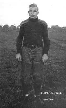 85. ^ Walter H. Eckersall (December 3, 1911). "Choice of Stars for All Western: Eckersall Selects Best Football Eleven on Basis of 1911 Season's Work; Conklin Made Captain". Chicago Daily Tribune. p. C1. Archived from the original on January 31, 2013.