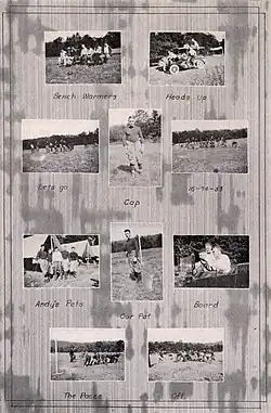 "The early season conditioning has been severe but a pleasant change just at the close of the stay at camp sent the men back to Pittsburgh feeling rather as though at least part of the trip had been simply a vacation. On Thursday evening a reception was held at camp in which about 30 girls from Johnstown, Windber and adjacent towns were the guests of the footballers. After a big corn roast, with wieners, ice cream and other staples on the side, a very enjoyable dance was held,. The hour at which the athletes are usually required to retire being advanced a little in consideration of the imminent departure."[19]