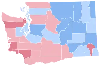 However, a powerful "peace vote" in the Western states[4] due to opposition to participation in World War I, and the transfer of a considerable part of the substantial vote for Eugene Debs from the previous election to Wilson owing to such Progressive reforms as the Sixteenth and Seventeenth Amendments[5] allowed Woodrow Wilson to carry Washington by a 4.25 percentage point margin. In doing this, Wilson was the first ever Democratic victor in the Western Washington Puget Sound counties of Island, San Juan and Kitsap,[6] and the only Democrat between 1904 and 1924 to carry any Washington county in a two-way presidential race.