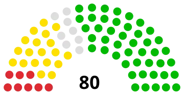 Last election 40 seats, 47.1% 34 seats, 43.1% 5 seats, 8.4%[a]