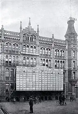 The results of the 1919 general election displayed outside The Press Building in Christchurch