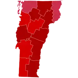 Coolidge swept every county in Vermont by landslide margins, taking more than 60% of the vote in all fourteen. Coolidge broke seventy percent of the vote in eleven counties and even broke eighty percent in seven. Notably, Coolidge received more than seventy percent of the vote even in Chittenden County, the state's most populous county, home to the state's largest city, Burlington. Just four years later, in 1928, Chittenden County flipped to the Democrats and become a Democratic stronghold in the New Deal era, making Coolidge's dominance there in 1924 remarkable. It would also be the final time that Chittenden County would be won by a Republican candidate until Dwight D. Eisenhower won it in 1952.[7]