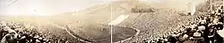 United Press called the 1927 Rose Bowl "the football championship of America", and the game was considered the most exciting in the series up to that time. The crowd of 68,000 set an attendance record. Stanford's George Bogue missed an 18-yard field goal attempt in the first quarter, then threw a touchdown pass to Ed Walker and kicked the point after to put Stanford up, 7–0. Stanford held that lead through most of the rest of the game, but in the final minutes, they were forced to punt on fourth down. Frankie Wilton's kick was blocked, and Alabama took over 14 yards from goal. Four plays later, and with a minute left, Jimmy Johnson carried the ball for a touchdown, making it 7–6. The two-point conversion, and overtime, were decades in the future. Stanford's only hope was to block the point after, but Alabama ran the play quickly and Herschel Caldwell's kick tied Stanford, and took away a Stanford victory in the final minute.