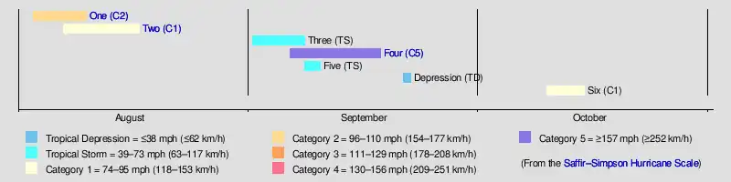 The most significant storm of the season, the Okeechobee hurricane, struck Puerto Rico as a Category 5 hurricane. Several islands of the Greater and Lesser Antilles suffered "great destruction", especially Guadeloupe and Puerto Rico. The storm then crossed the Bahamas as a Category 4 hurricane, leaving deaths and severe damage on some islands. Also as a Category 4, the cyclone struck West Palm Beach, Florida, resulting in catastrophic wind damage. Inland flooding and storm surge resulted in Lake Okeechobee overflowing its banks, flooding nearby towns and leaving at least 2,500 deaths, making it the second deadliest hurricane in the United States after the 1900 Galveston hurricane. Overall, this storm caused at least $100 million in damage and 4,079 deaths. The three remaining systems did not impact land. Collectively, the storms of this season left over $102 million in damage and at least 4,289 fatalities.