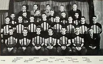 The 1933 Illinois Fighting Illini football team was an American football team that represented the University of Illinois during the 1933 Big Ten Conference football season. In their 21st season under head coach Robert Zuppke, the Illini compiled a 5–3 record and finished in a tie for fifth place in the Big Ten Conference.[1] Fullback Dave Cook was selected as the team's most valuable player.[2] Fullback Herman Walser was the team captain.[3]