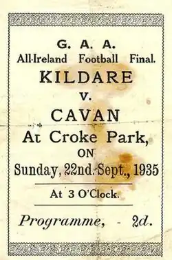 2. ^ Foley, Cliona (31 August 1998). "Kildare celebrate famous victory". Irish Independent. Unimaginable hysteria greeted Kildare's victory which now pits them against Galway on September 27 in their first All-Ireland final since 1935.