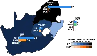| Province | United | Purified National | Dominion | Labour | Socialist | Total |