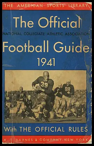 Star fullback George Paskvan carries the ball against Illinois on the cover of the 1941 NCAA Football Guide.