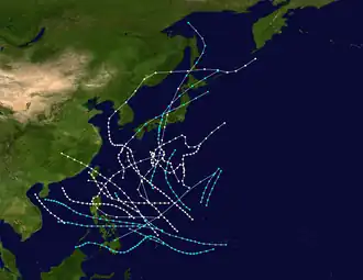 There were 23 tropical cyclones in 1944 in the western Pacific, including Typhoon Cobra.[1]