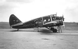 4. ^ Conversion of VH-UKK to twin-engines was completed first. Shortly after it re-entered service the fabric on its left wing was slightly damaged in a brief fire during re-fuelling at Mackay, Queensland. The left wing of VH-UYY, which was undergoing conversion at Essendon Airport, was taken to Mackay and installed on VH-UKK to allow it to return to service. The fire-damaged wing from VH-UKK was taken to Essendon Airport, repaired, and installed on VH-UYY. This was the wing that ultimately failed on 31 January 1945.[3] VH-UKK had flown for 11,670 hours prior to conversion to twin-engine configuration. By the time VH-UKK ceased flying it had flown for 15,020 hours.[8]