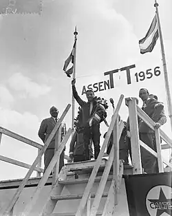 Carlo Ubbiali (pictured in 1956) successfully defended his 125cc World Championship title. He also became the 250cc World Champion in 1959.