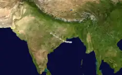 On September 22, an area of low pressure was identified over the Andaman Sea. Tracking northwestward, the system consolidated into a depression two days later over the Bay of Bengal. During the evening of September 24, it further strengthened to a deep depression, with winds of 55 km/h (35 mph). Early the next day it made landfall in Orissa between Balasore and Chandabali.[22] Once onshore, the system slowed and turned northeastward.[23] It later dissipated over Nepal on September 28 as it interacted with the Himalayas.[22]