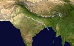 Heavy rains affected much of Bihar, Madhya Pradesh, Punjab, and Uttar Pradesh. The highest daily precipitation total was measured in Ghatsila at 190 mm (7.5 in). These rains triggered severe flooding along the Beas, Ganges, Jamuna, and Sutlej rivers. Large areas of Uttar Pradesh were left submerged, and significant crop and property damage took place in Punjab.[20] At least 55 people were killed in Punjab alone, and losses overall amounted to $9.24 million (1960 USD).[21]