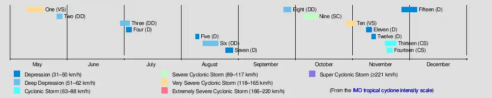Fifteen November 26 – December 3 Depression 55 km/h (35 mph) N/A Andaman Islands, Andhra Pradesh None 0