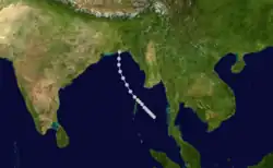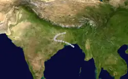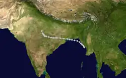 Produced torrential rain over northeastern India, with Cherrapunji recording 1,340 mm (53 in) of precipitation over a four-day span.[11]