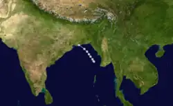 A severe cyclonic storm developed in the Arabian Sea on June 21. The system struck western India before dissipating on June 26.[12]