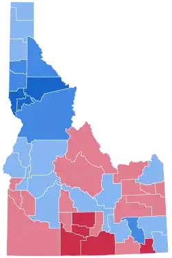 | Twin Falls | 7,638 | 39.87% | 11,518 | 60.13% | -3,880 | -20.26% | 19,156 |