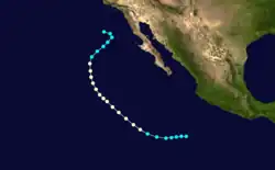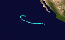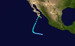 On July 24, the sixth tropical storm of the season was identified relatively close to the Mexican coast. The storm continued a north-westward direction until it dissipated south of the Baja Peninsula.[10]
