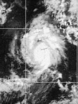 On July 6, a tropical depression formed south of Mexico. The depression had its origin in a loosely organized area of squalls which had first appeared on satellite photos late on July 5. It strengthened to a tropical storm on the 9th and was named Denise.[5] On July 15, Denise, now in the Central Pacific weakened into a tropical depression. The depression dissipated south-west of Hawaii on July 18, never threatening land.[6][7][8]