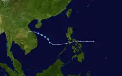 A cold core low developed tropical characteristics and became Tropical Depression 8W on July 6. It tracked westward, becoming a tropical storm later that day and a typhoon on July 7. After briefly weakening to a tropical storm, Clara re-attained typhoon status, and it peaked in intensity on July 10, reaching winds of 115 mph. Clara weakened to a 90 mph typhoon just before hitting Taiwan on the 11th, and it dissipated over China the next day. Clara's heavy rains caused 69 fatalities and a further 32 people to be reported as missing.
