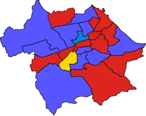 Following the election, Edinburgh Corporation was composed of 31 Progressives, 21 Labour councillors, 7 SNP councillors, 6 Conservatives, 2 Liberals, and 2 independents. The SNP saw its vote collapse, failing to win a single ward and losing the only ward it was defending.[ 1]