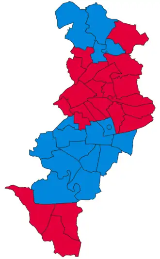| Labour Party | 63,187 (46.2%) | 22 (56.4%) | 22 / 39